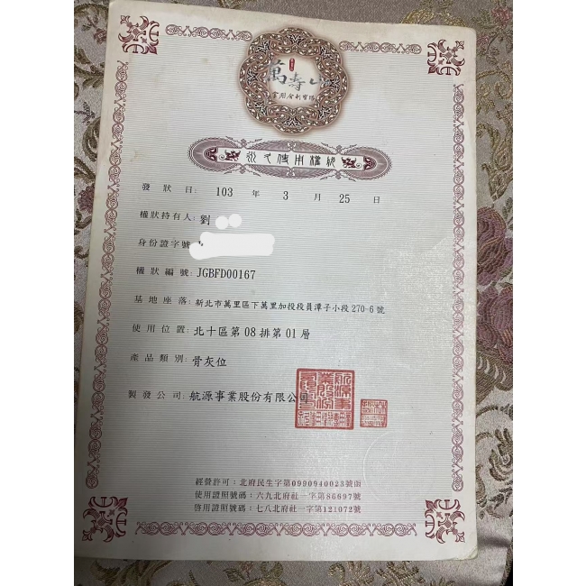 陳小姐骨灰罐已售