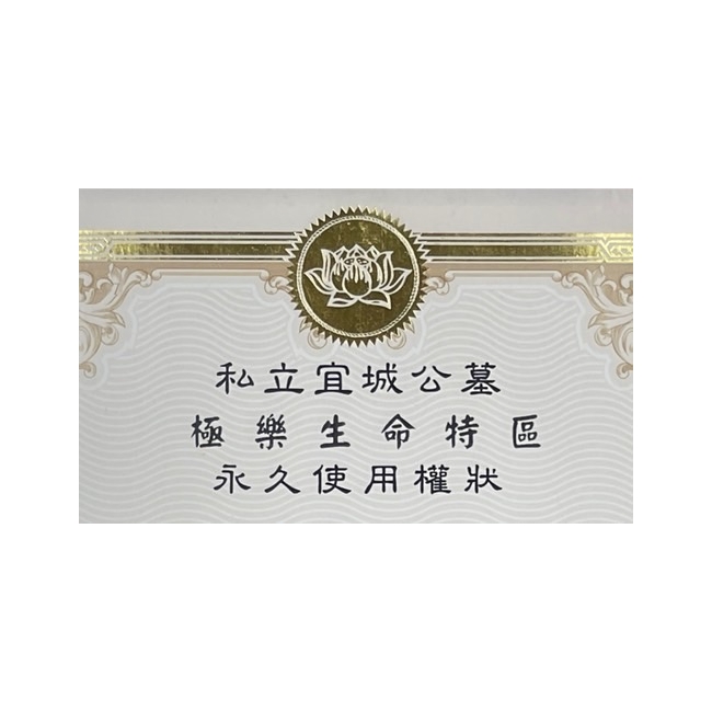 私立萬壽山墓園納骨位永久使用權狀
