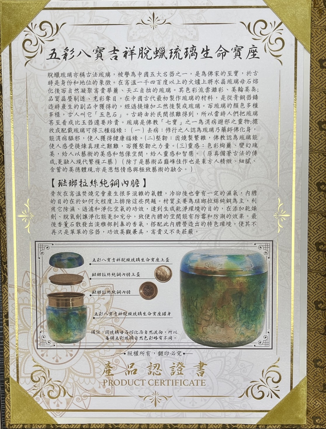 五彩八寶吉祥脫蠟吉祥脫蠟琉璃生命寶座
