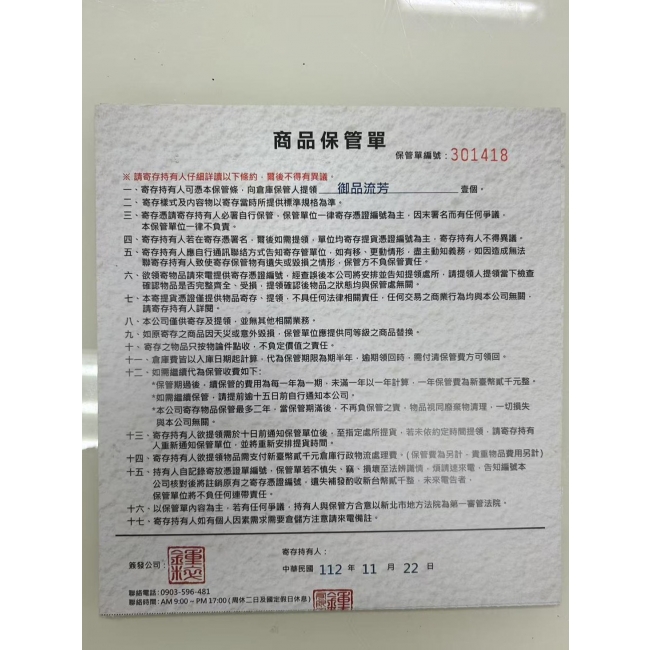 產品:御品流芳共4個加介紹書