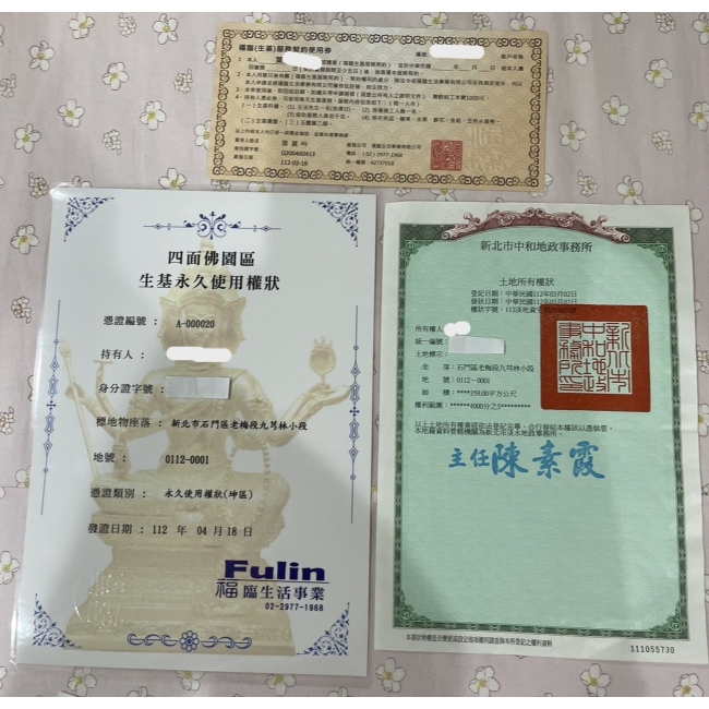 產品:四面佛憑證、權狀(含土)